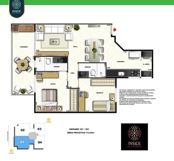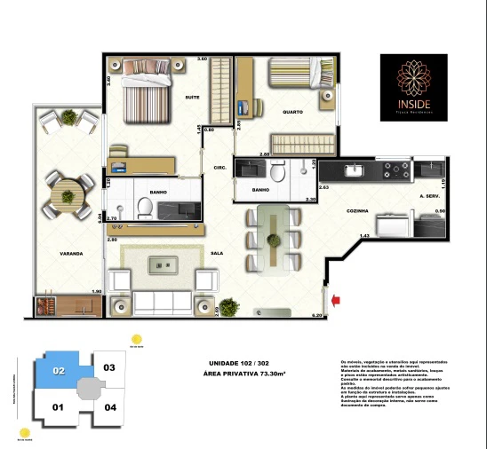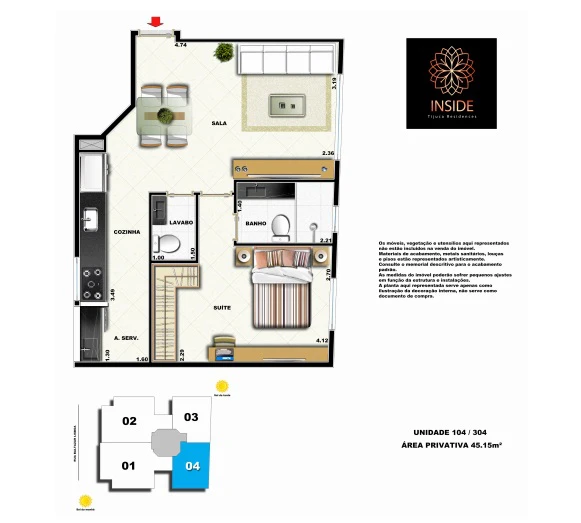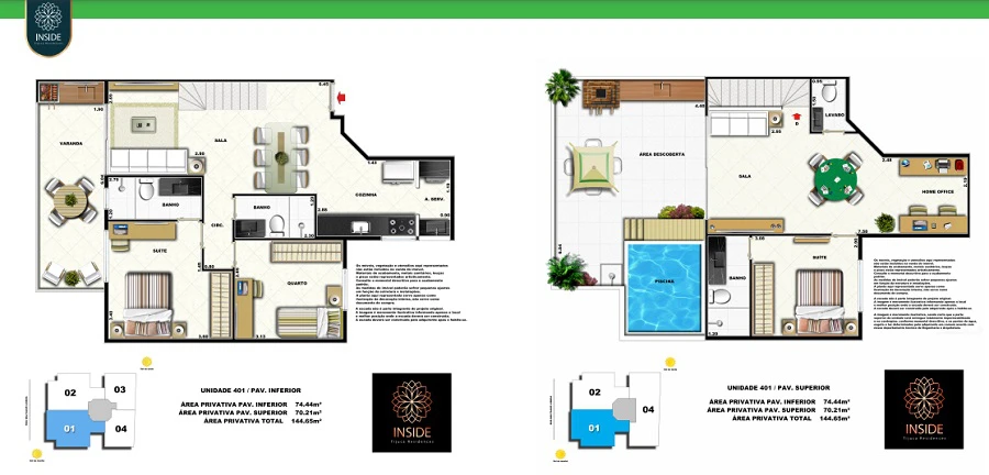 Apartamos de 2 quartos com 73m² até 74m².